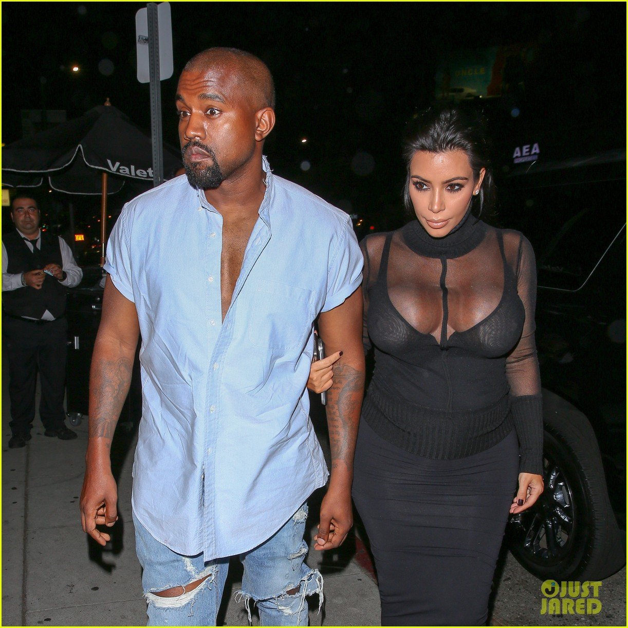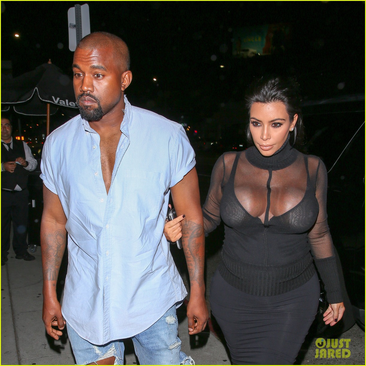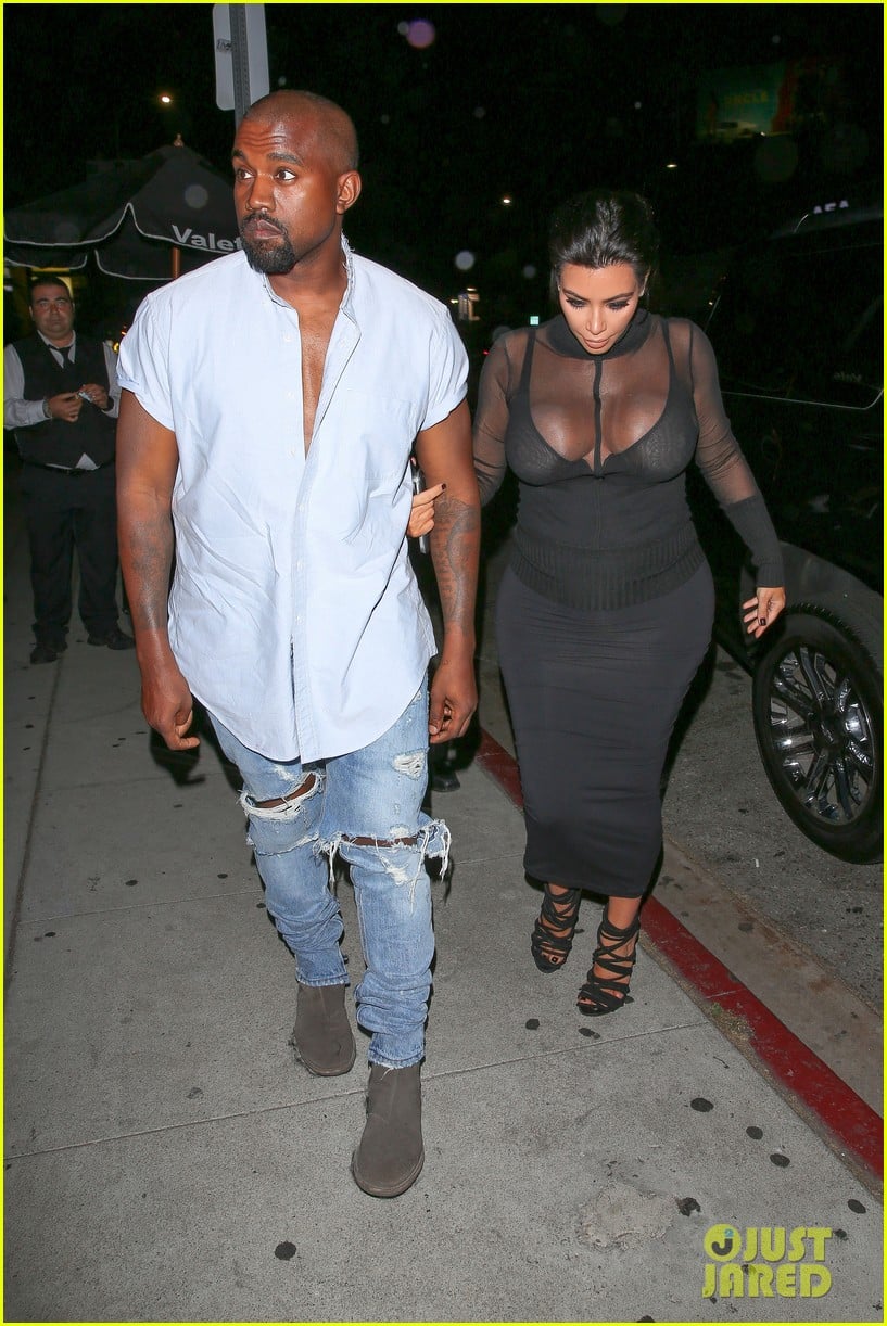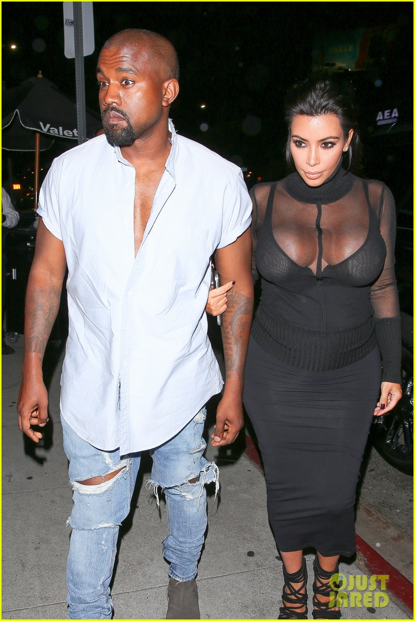 Kim Kardashian reveals a lot of cleavage while wearing a partially sheer dress on Sunday night (August 9) in West Hollywood, Calif.